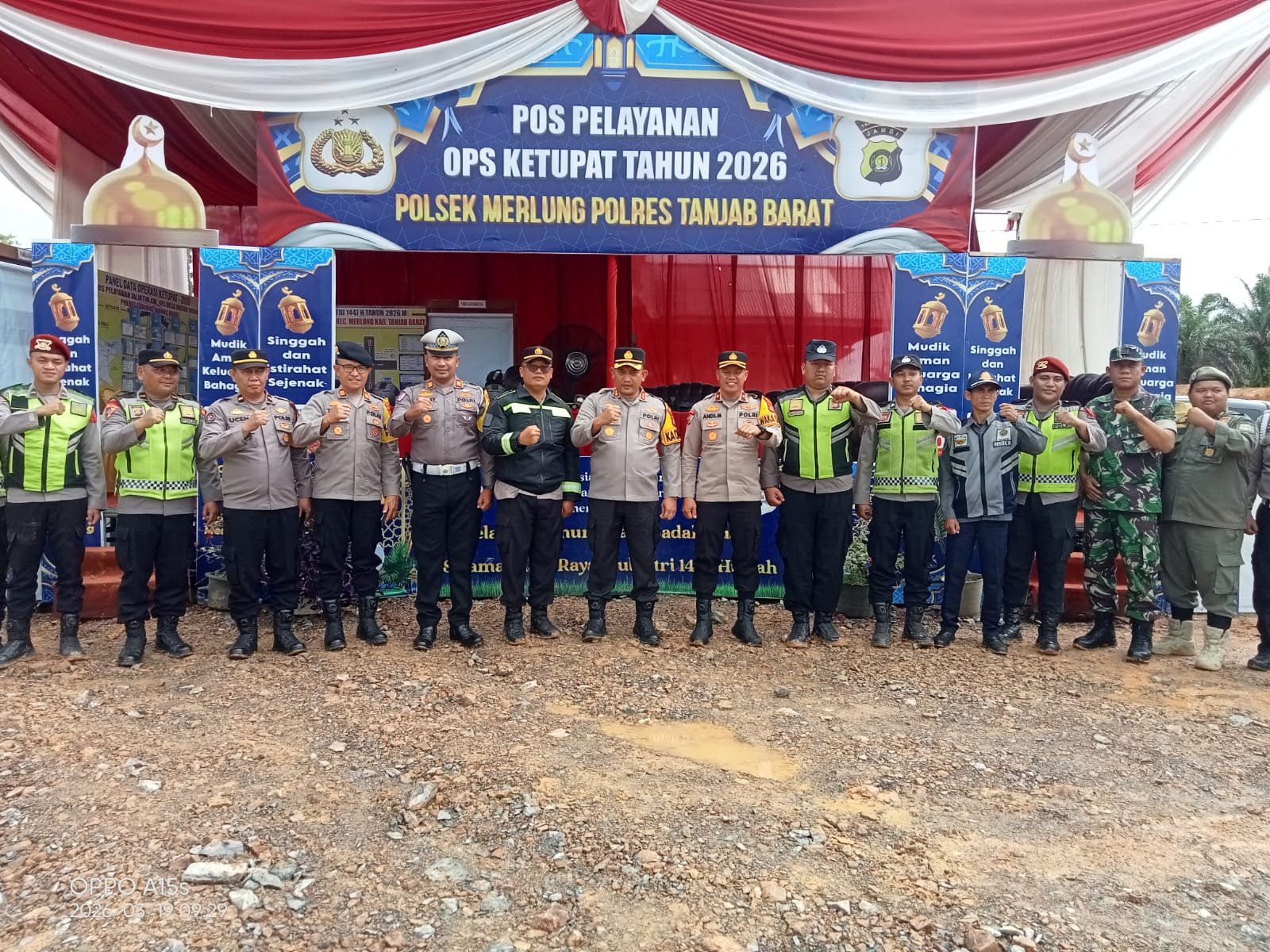 Cakrawala News.pro. Tanjab Barat – Kapolres Tanjab Barat AKBP Maulana Kuswicaksono.S.I.K., M.H. dalam rangka kegiatan memastikan kesiapan semua personal dan pelayanan kepada masyarakat menghadapi arus mudik dan perayaan Hari Raya Idhul Fitri 1447 H/2026  melaksanakan kunjungan dan pengecekan ke  Pos pengamanan dan pos pelayanan OPS ketupat di Polsek Merlung, jalan Lintas Timur Km 95 Desa Dusun Mudo Kecamatan Muara Papalik Kabupaten Tanjung Jabung Barat (19/3/2026)